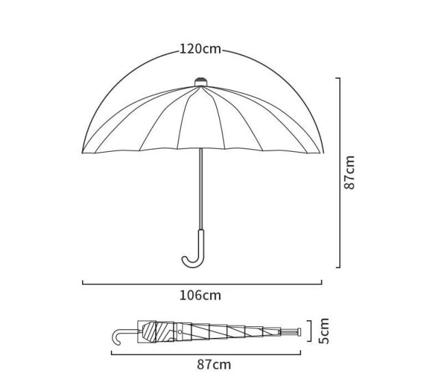| サイズについての説明 | 全長:約87cm 開傘時直径:約106cm 重さ:約490g |