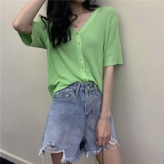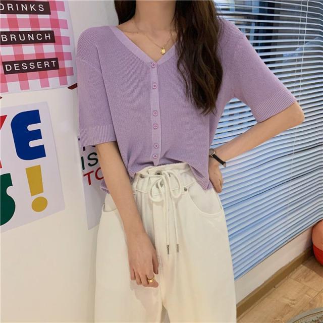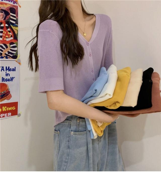 薄手ニット カーディガン 半袖 レディース トップス 夏 UVカット サマーカーディガン サマーニット Vネック おしゃれ 大きいサイズ ナチュラル 学生 通勤 オフィス