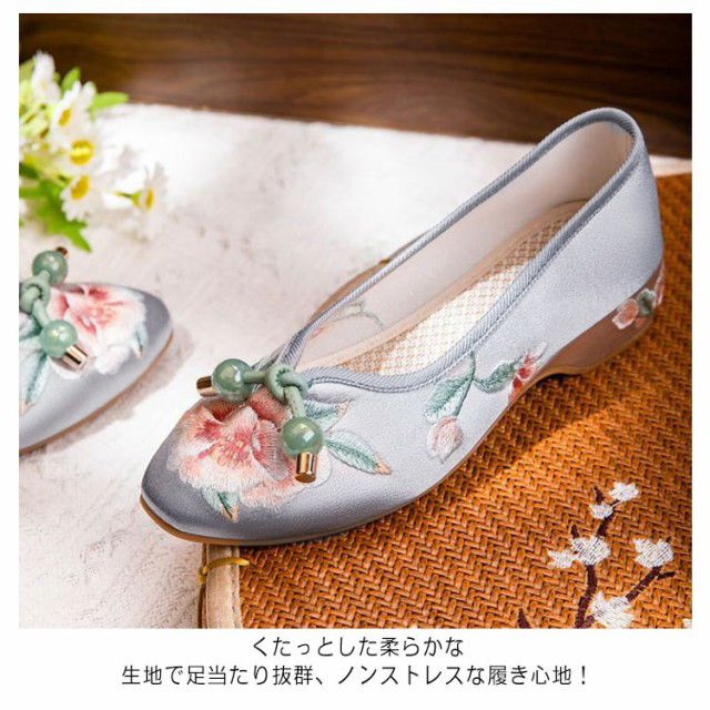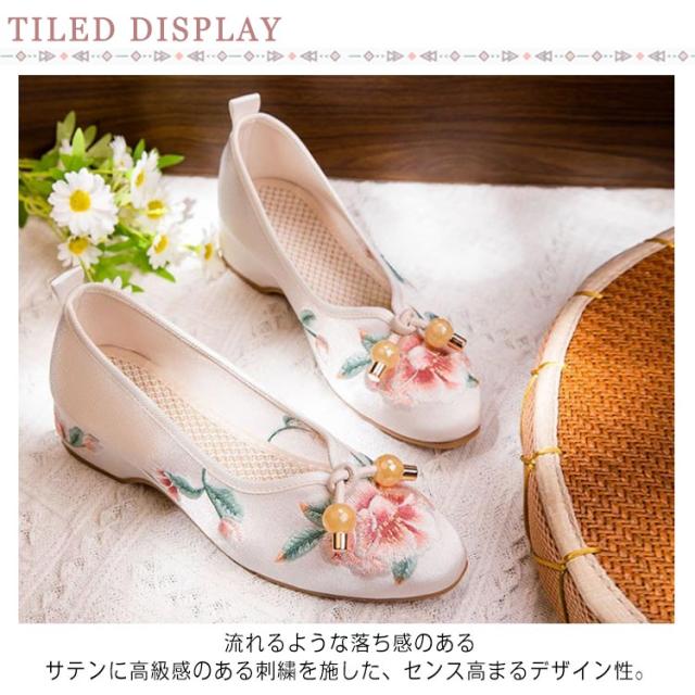 チャイナシューズ 台湾シューズ レディース 刺繍パンプス サテン 刺繍シューズ パンプス ローヒール フラットパンプス ぺたんこ 歩きやすい チャイナ シューズ 花柄刺繍 女性用 婦人靴 中華 コスプレ 唐装 漢服 柔らかい 疲れない おしゃれ