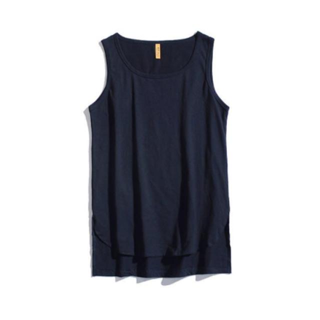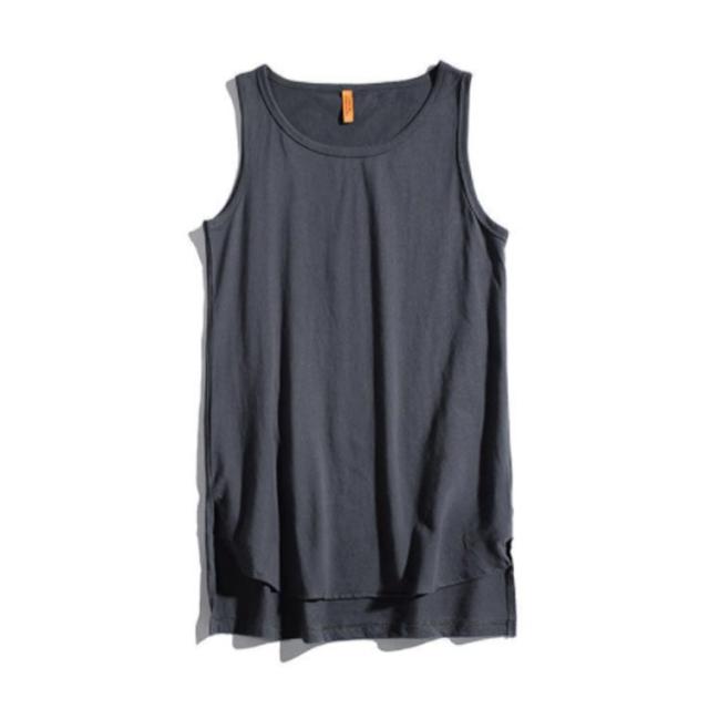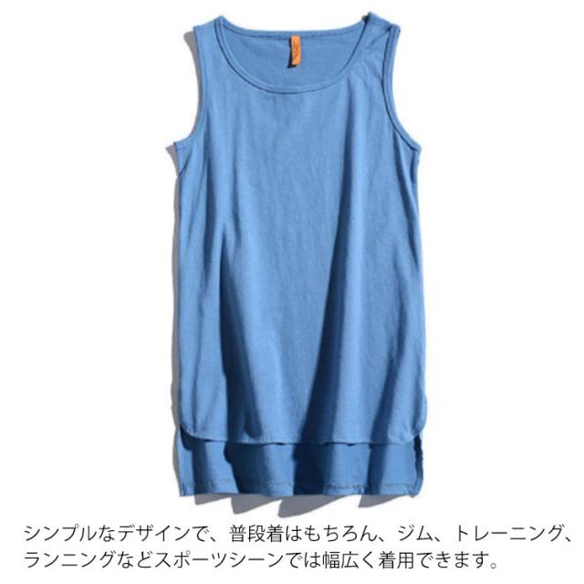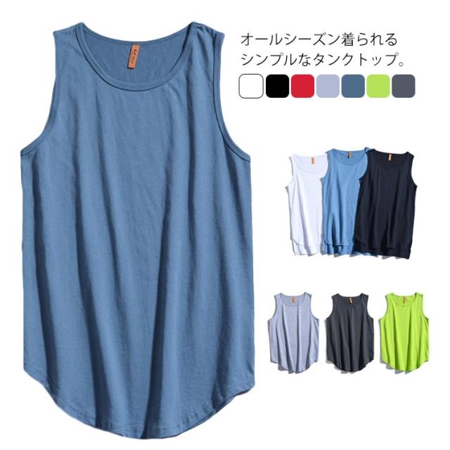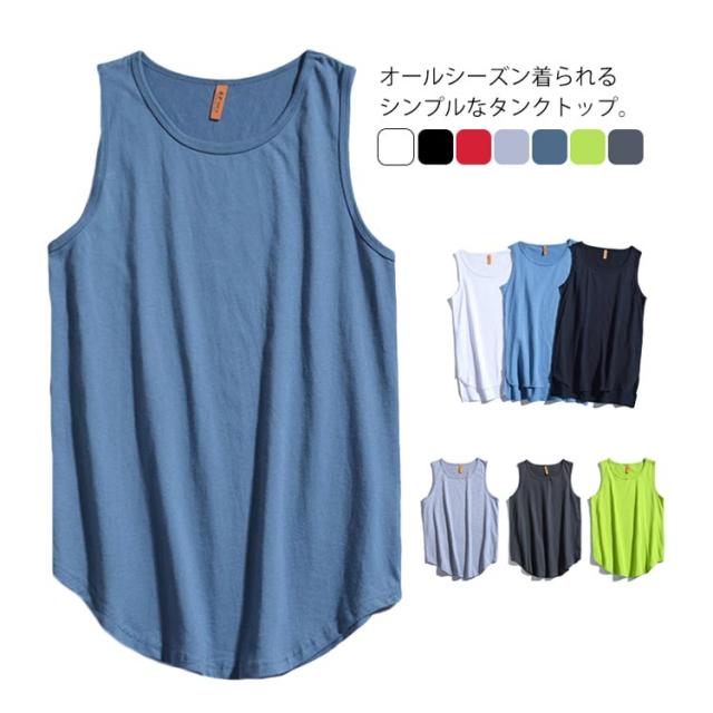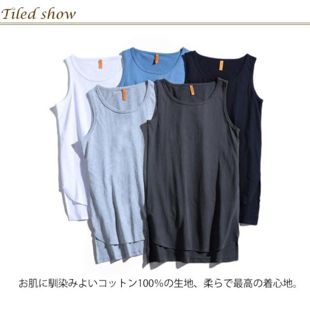 タンクトップ メンズ ノースリーブ トップス カットソー 綿100% 送料無料 インナー 下着 ラウンドネック 無地 大きいサイズ スリット入り お兄系 スポーティ ストリート おしゃれ 春夏 秋冬 オールシーズン