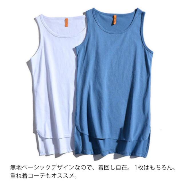 | オールシーズン着られるシンプルなタンクトップ。 お肌に馴染みよいコットン100%の生地、柔らで最高の着心地。 ゆったりノンストレスシルエットが魅力的! 無地デザインなので、着回し自在。 1枚はもちろん、重ね着コーデもオススメ。 スリット入り、丸みの帯びた裾デザイン、センスよい大人のスタイリング◎ 暑い時は1枚で、冬の寒い時期はインナー下着として、季節を問わずオールシーズンお使い頂けます。 シンプルなデザインで、普段着はもちろん、ジム、トレーニング、ランニングなどスポーツシーンでは幅広く着用できます。 | |