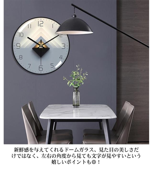 | シンプルでスタイリッシュなウォールクロック。 モダンなデザインが壁に掛けるだけでインテリア空間をグッとスタイリッシュに◎ まるで光っているようなプリントがモダンな雰囲気を与えてくれます。 新鮮感を与えてくれるドームガラス、見た目の美しさだけではなく、左右の角度から見ても文字が見やすいという嬉しいポイントも◎! 静かな「連続秒針」なので子供部屋や寝室にもオススメ。 結婚祝い、引越し祝い、新築祝い、父の日、母の日、敬老の日などのギフトとしてもお勧めです。 | |