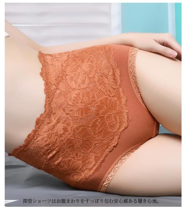 全8色×5サイズ!ショーツ 深め 下着 レースショーツ 送料無料 レディース レース 女性 ハイウエストショーツ 深履き 股上深め レディース 綿 レース ショーツ パンツ スタンダード アンダーウエア レース コットン 肌にやさしい 伸縮性 腹巻 母の日 婦人用