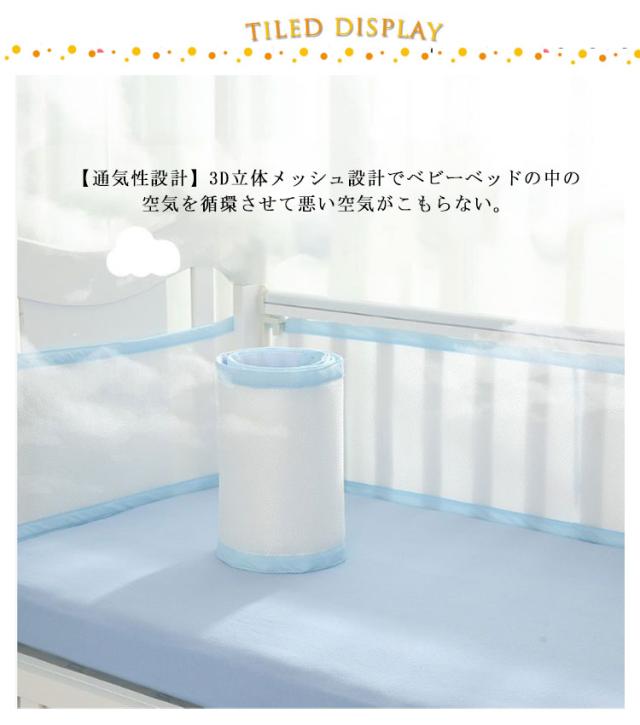 ベビーベッドガード メッシュタイプ 通気性 空気循環可能 夏用 ベッドバンパー ベビーベッド ガード 赤ちゃん サイドガード 転落防止 ケガ防止 洗濯可能 巻き込み防止 ベビーケア用品 新生児 出産祝い 2点セット 300cm 160cm