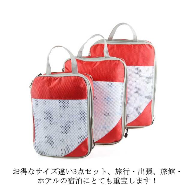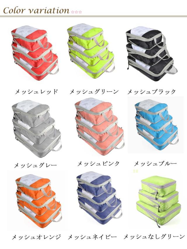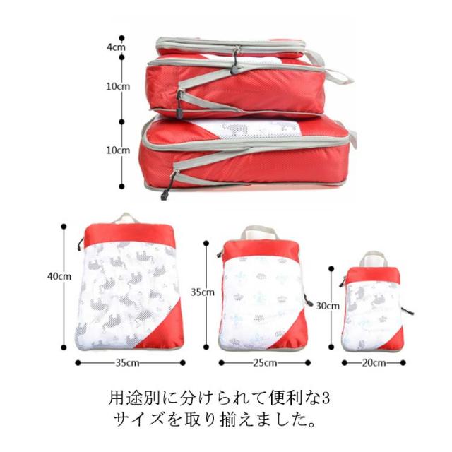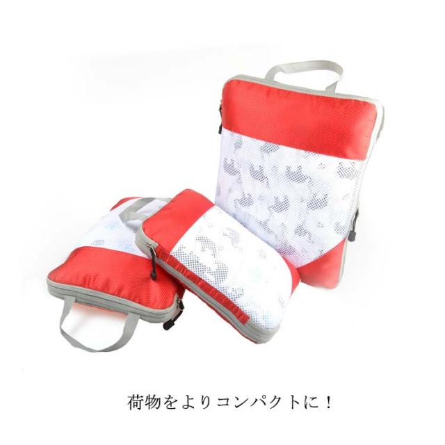 | 荷物をよりコンパクトに!サイズ違い旅行用圧縮袋3点セット ファスナーで圧縮することで、衣類スペースを約50%節約することができます! かさばりがちな衣類を圧縮して、スーツケースのスペースにお土産と思い出をたくさん詰め込みましょう! 用途別に分けられて便利な3サイズを取り揃えました。 お得なサイズ違い3点セット、旅行・出張、旅館・ホテルの宿泊にとても重宝します! 選べるメッシュタイプ、ニーズに合わせてお選びいただけるにもうれしいポイント。 | |