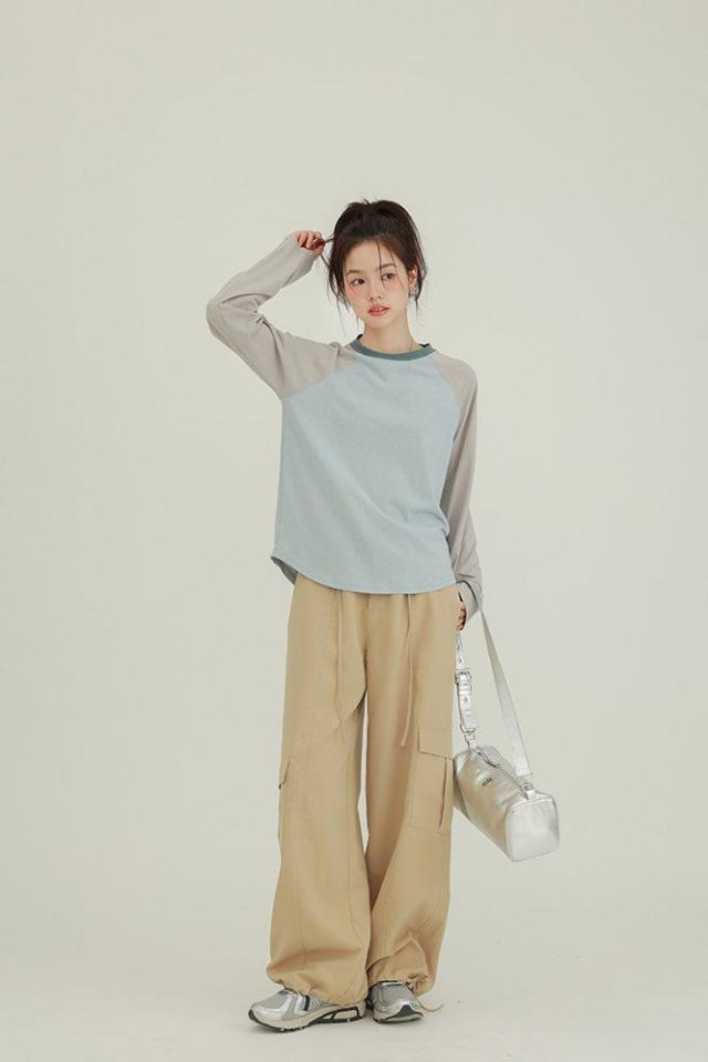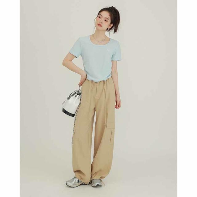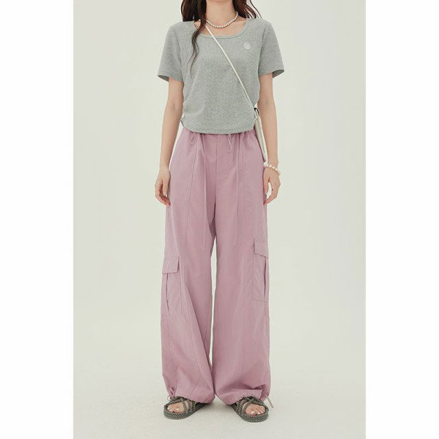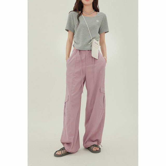 カーゴパンツ レトロ調 ハイウエスト レディース ロング ワイドパンツ ワイドシルエット 無地 ゆったり きれいめ ピンク カーキ 可愛い