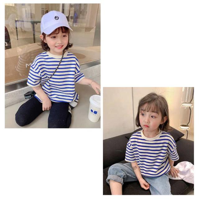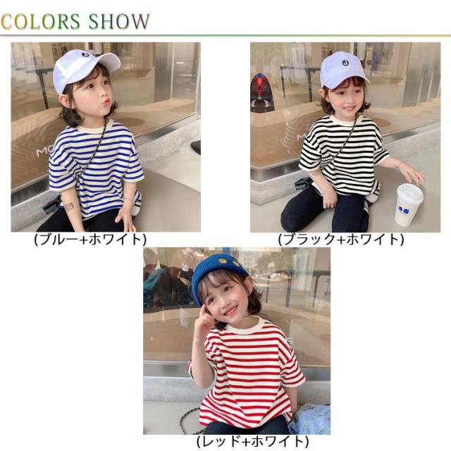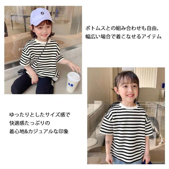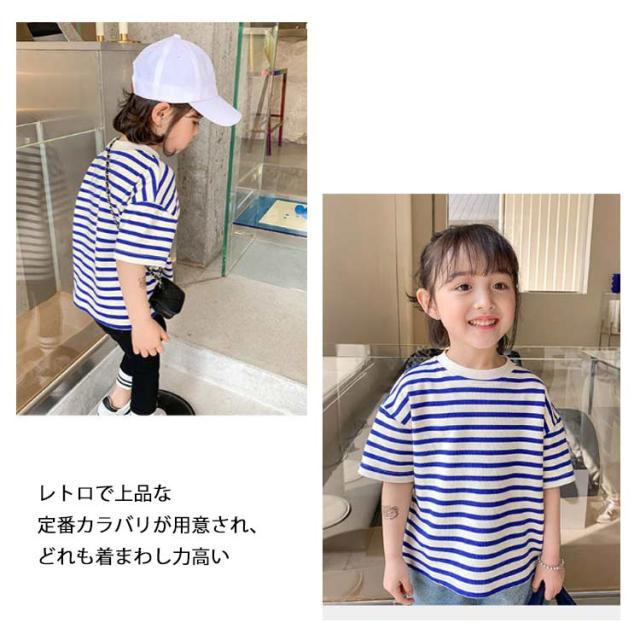 キッズ ボーダー柄Tシャツ 半袖 女の子 男の子 Tシャツ カットソー トップス オーバーサイズ 夏 子供 半袖Tシャツ ボーダー柄 マリンセーラー 女児 男児 ジュニアTシャツ 快適 送料無料