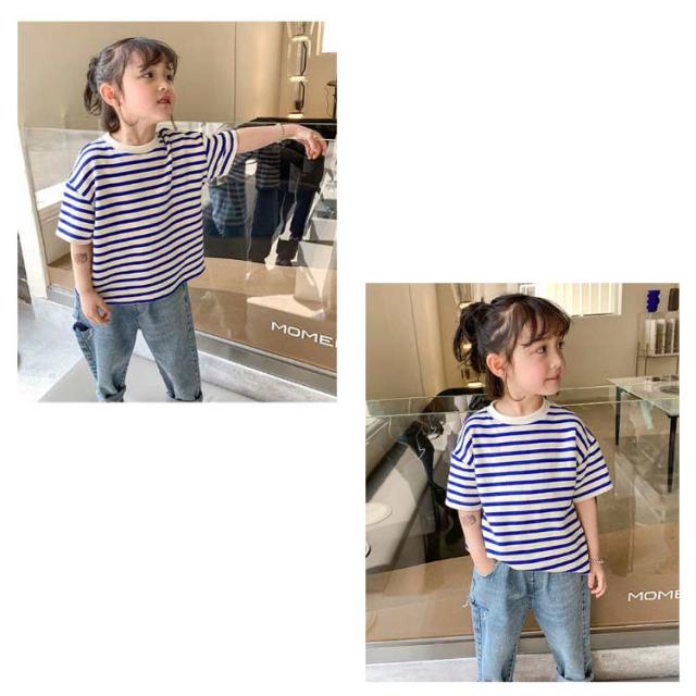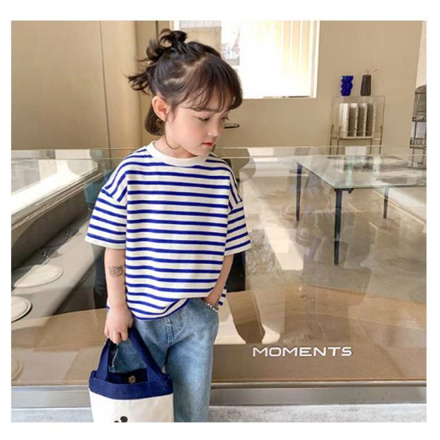 | 夏ファッションのマストアイテム、子供用半袖Tシャツ 吸湿性・通気性に優れて肌に優しい薄手綿素材を使用 ゆったりとしたサイズ感で快適感たっぷりの着心地&カジュアルな印象 マリン風ボーダー柄のデザインも夏らしい爽やか感を醸し出す レトロで上品な定番カラバリが用意され、どれも着まわし力高い ボトムスとの組み合わせも自由、幅広い場合で着こなせるアイテム | |