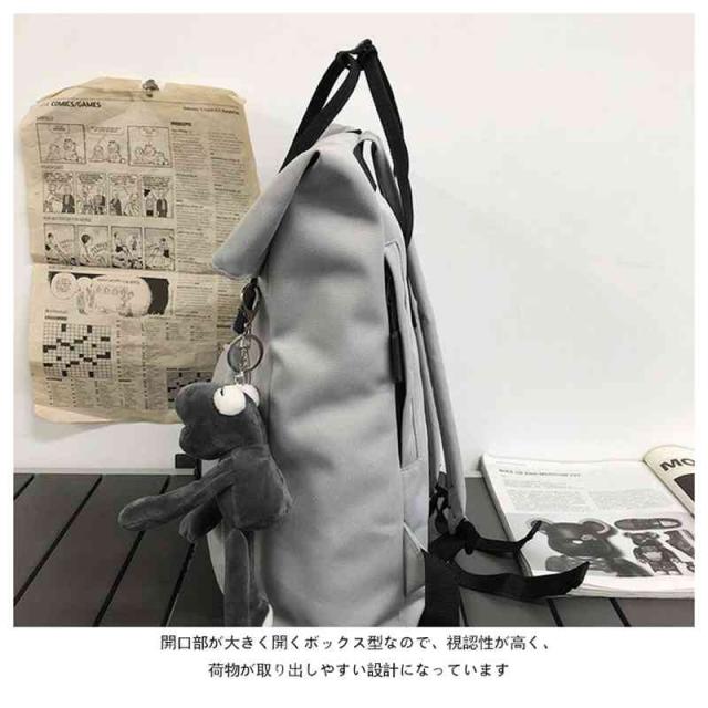 | 大容量バックパック トレンドのBOXロゴの配色はスタイリングに合わせやすく、通学・通勤にも便利なアイテムです。 30L収納可能で、たくさんの教科書や着替え、お弁当などを収納できます。 開口部が大きく開くボックス型なので、視認性が高く、荷物が取り出しやすい設計になっています。 | |