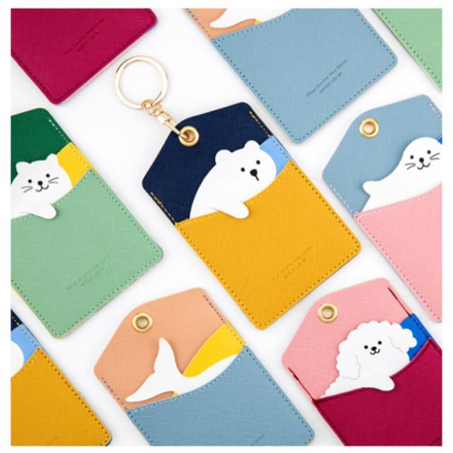 全9種類 パスケース 可愛い 定期入れ 縦型 アニマル カードケース 薄型 IDカード ホルダー 社員証 3枚 カード ホルダー 送料無料 両面 スリム 通勤 通学 免許証 診察券 ケース レザー 動物 学生 キーリング付き カードキー 鍵 カギ