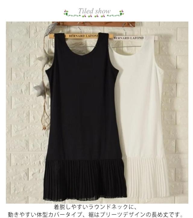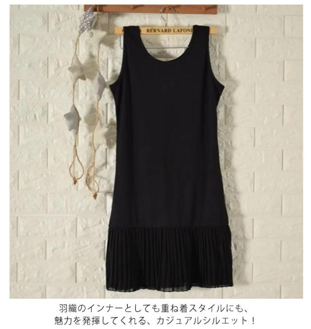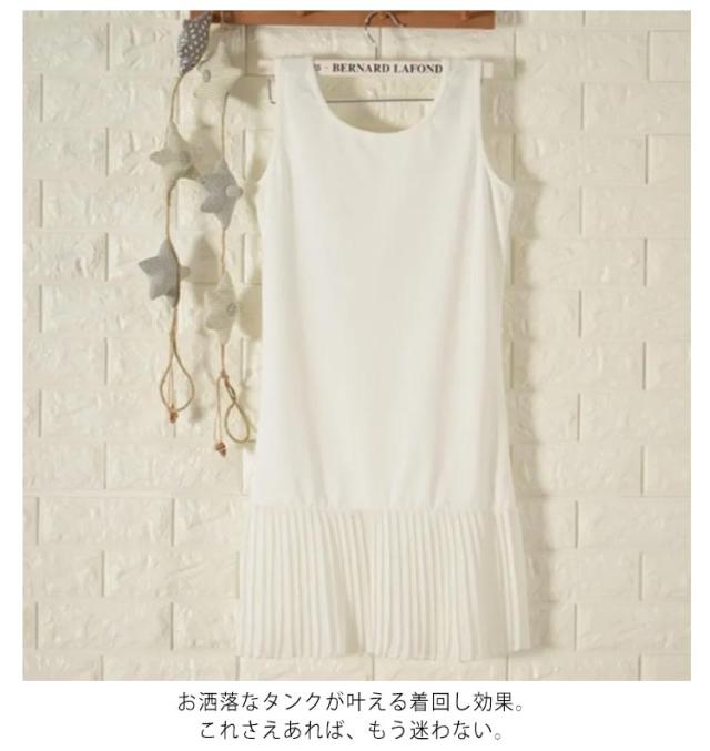 お尻が隠れる タンクトップ レイヤード プリーツ レイヤードタンクトップ レディース 重ね着 トップス 体型カバー レイヤードTシャツ ワンピース 大きいサイズ インナー 付け裾 キャミソール シャツ 黒 白 ホワイト プリーツ 春 夏 S M L XL 2XL 送料無料