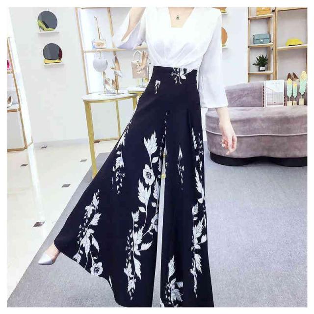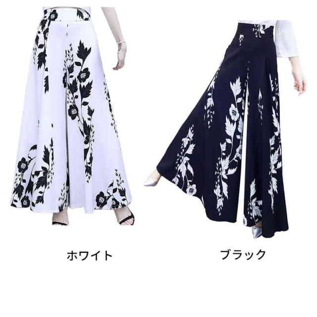 ワイドパンツ レディース ロングパンツ 春 夏 パンツ ワイド ガウチョパンツ ハイウエスト ロング丈 着痩せ 花柄 フレアパンツ ボトムス?大きいサイズ ウエストゴム?シンプル カジュアル おしゃれ おでかけ 送料無料