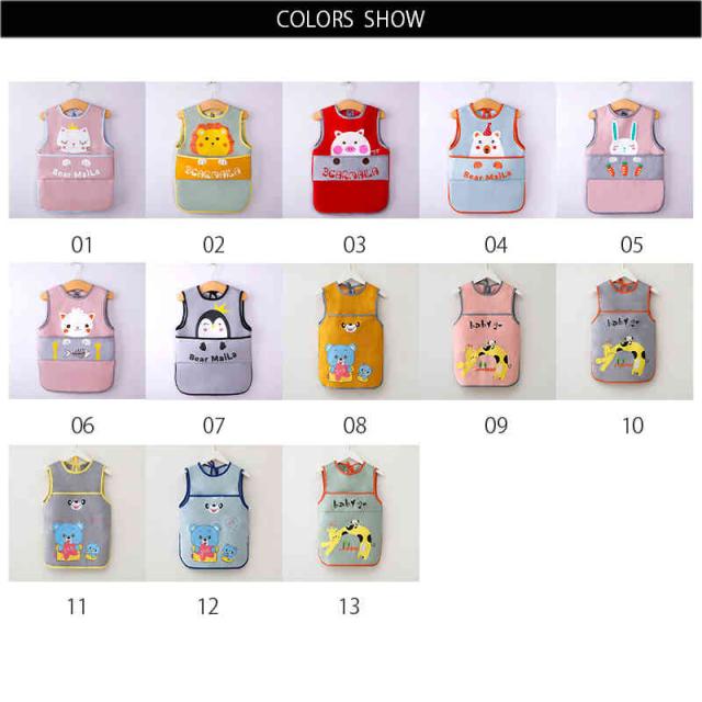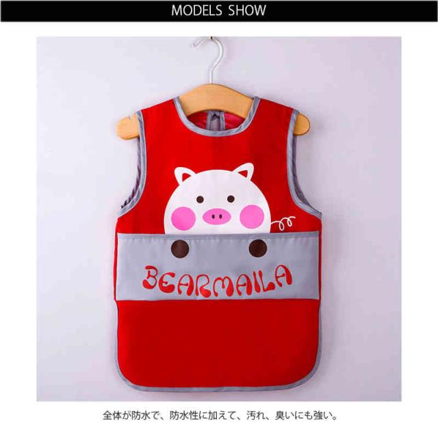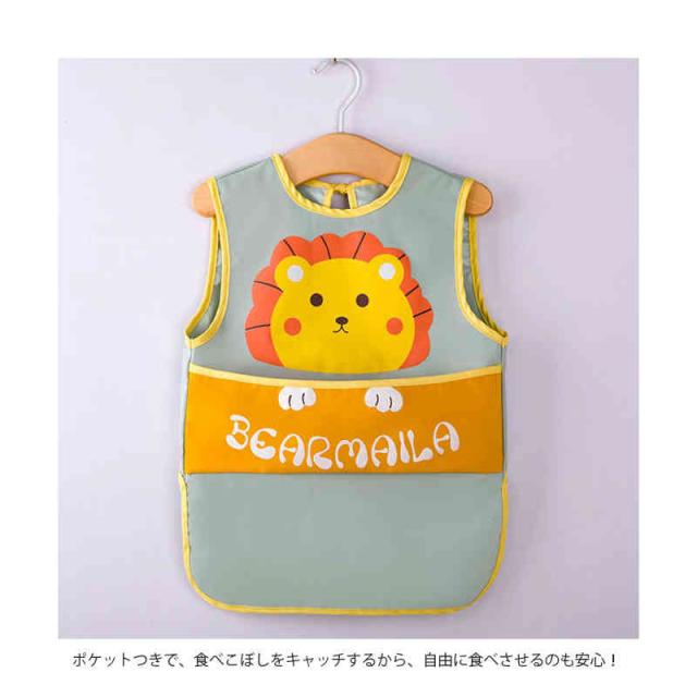 ベビー用エプロン ポケット付き ノースリーブ 食べこぼしガード 袖なしタイプ 防水食事用エプロン 動物 新生児 幼児 スタイ ベビーエプロン 赤ちゃん 男の子 女の子