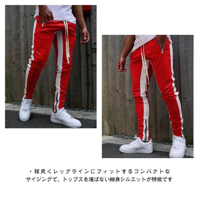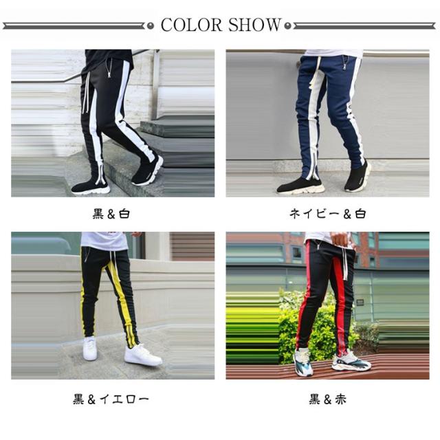 ジョガーパンツ メンズ スウェットパンツ スキニー 裾ファスナー付 スウェット ジャージ パンツ ボトムス サイドライン スポーツウエア スリム 細身 トレーニングウエア 春 夏 全8色