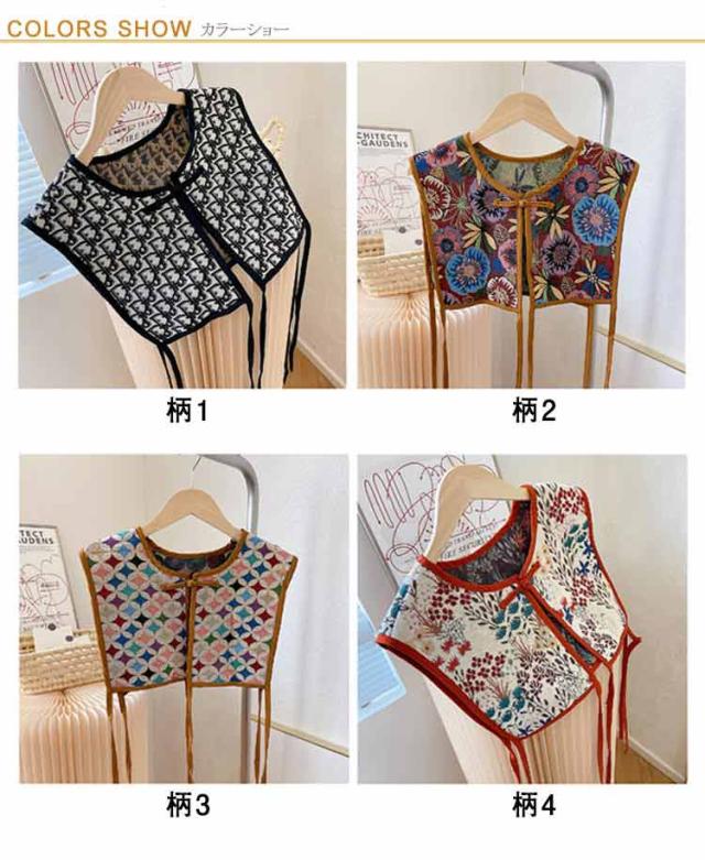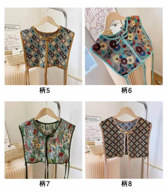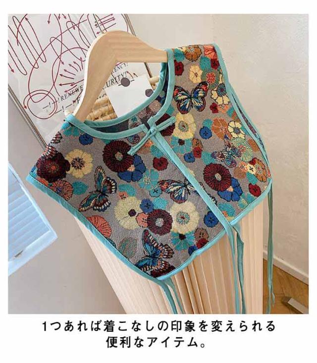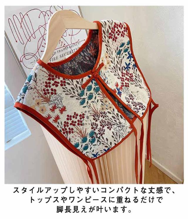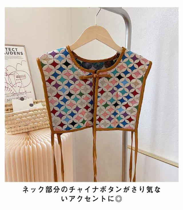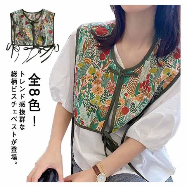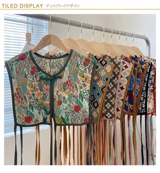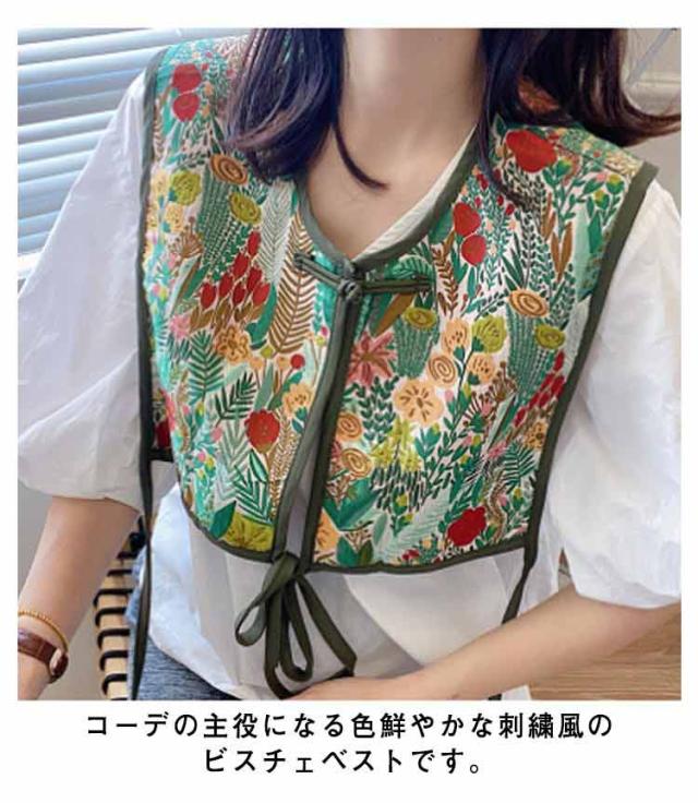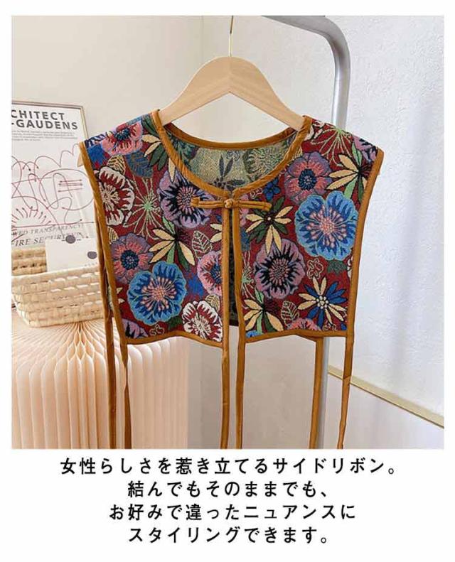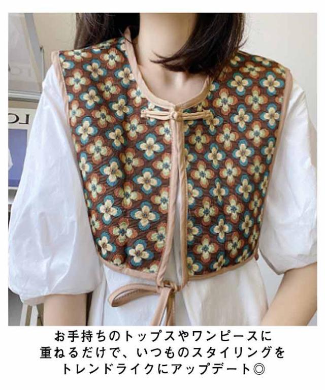 ビスチェベスト 全8柄 ベスト 送料無料 ショート丈 総柄 レディース トップス ビスチェ 刺繍ベスト 付け襟 ヴィンテージ風 レトロ セーラーカラー チャイナボタン 総柄 レイヤード 重ね着 大人カジュアル エスニック ショール 夏 春 秋
