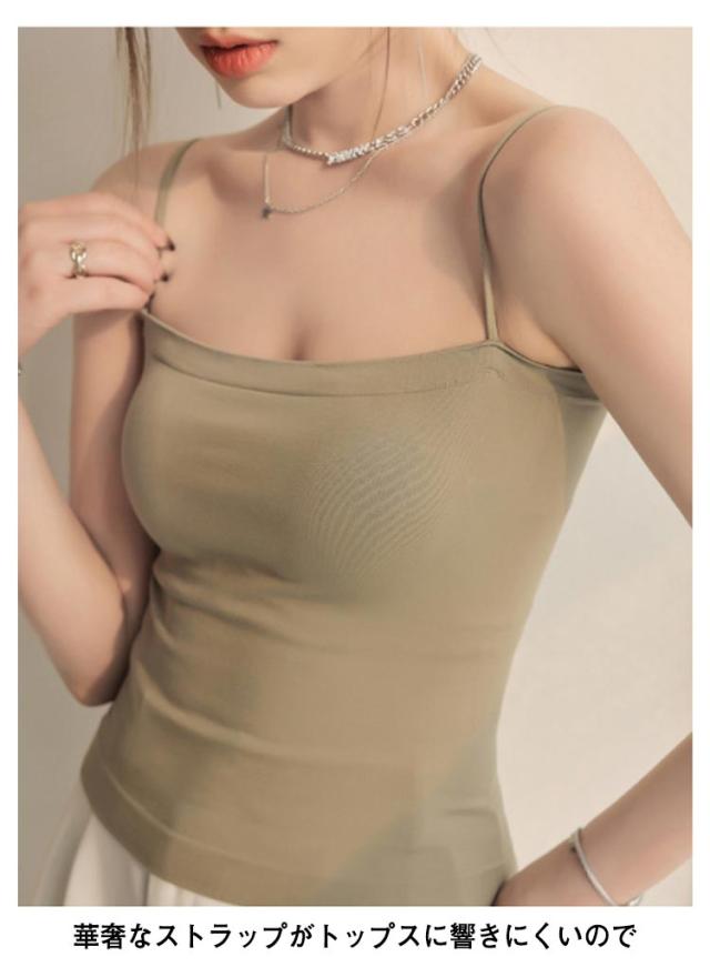 カップ付きキャミソール カップ付き キャミソール カップ付きインナー 韓国 ノンワイヤー ブラトップ キャミ カップ キャミソール ナローストラップ インナー レディース 締め付けない ホワイト グレー ブラック カーキブラウン カーグリーン