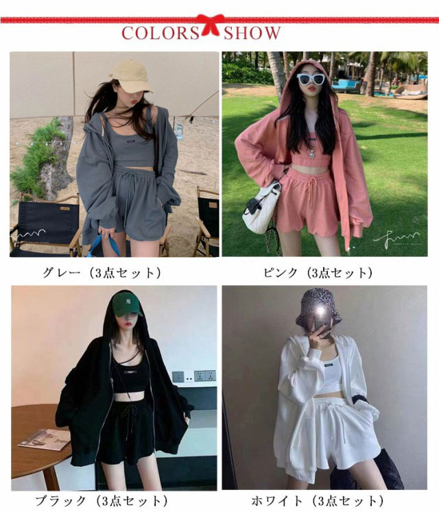 | ゆるっとしたパーカーにクロップド丈のキャミとショーツのルームウェア3点セット。 王道なデザインはシンプルに可愛く、一着は持っておきたい3アイテム。 オーバーサイズのパーカーに短めのショーツでスタイルアップが叶います。 ポケット付きなのも嬉しいポイント! コンビニから、ジム、ちょっとそこまでというときにあると重宝する、 楽ちんで可愛い”こればっかり着ちゃう”3点セットです♪ | |