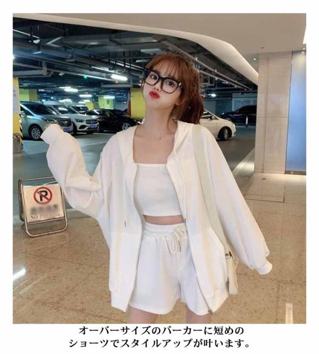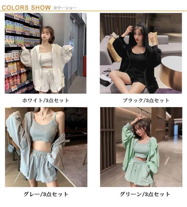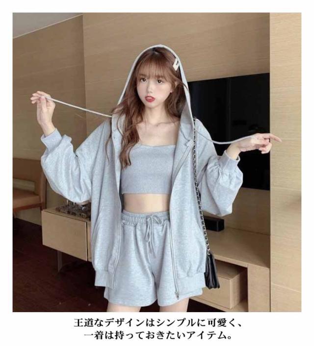 ルームウェア レディース セットアップ 上下セット パーカー カーディガン タンクトップ キャミソール ショーツ ハーフパンツ パジャマ 部屋着 ワンマイルウェア クロップド丈 スウェット ポケット付き 可愛い お洒落 シンプル 無地巻 リラックスウェア