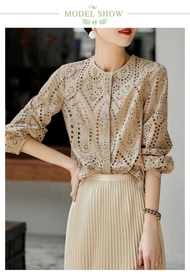 | 刺繍レースのヘルシーな透け感とボリューム袖が大人可愛いブラウス。 華やかなルックスが、着るだけで旬コーデを演出してくれます。 繊細な刺繍レースを贅沢に施した、こなれ感たっぷり! ナチュラルな風合い溢れるやさしい肌触りのコットン混素材で、さらりとした快適な着心地です。 程よい肌見せで抜け感を出しつつ、気になる部分をカバーできるデザインなのも嬉しいポイント。 トップスとしても羽織りとしても活躍するデザインで、着方によって印象を変えられるところも魅力◎ 絶妙な袖丈と程よい透かしデザインなので、夏も涼しくロングシーズン着用できるのも魅力です。 ゆったり程よくふんわりしたシルエットなので、トレンドのスタイリングが即完成します! | |