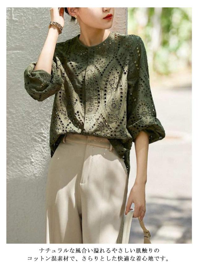 スカラップレースブラウス シャツ ブラウス レディース 刺繍 総レース シャツ カーディガン マルチway 羽織り シアーシャツ ボリュームスリーブ シースルー シアー 薄手 きれいめ ゆったり 夏 可愛い 大人 カジュアル 送料無料
