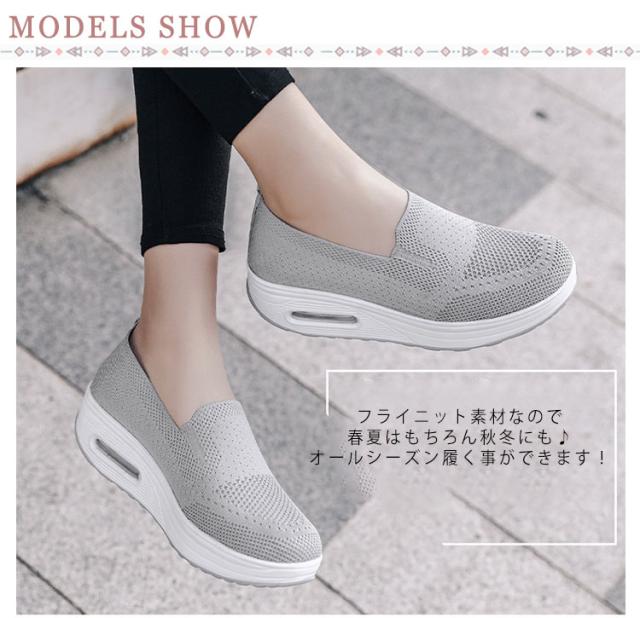 | 約5cm厚底、履くだけでこっそり美脚をゲットできちゃいます♪ ★スリッポンだから脱ぎ履き一瞬 時間に追われていても、履き口にゴアのついたスリッポンなのでさっと履けます。急がなきゃという時にもパット選べるデザインなのもGOOD ★一年中使える フライニット素材なので春夏はもちろん秋冬にも♪ オールシーズン履く事ができます! ★滑り止め 滑りにくいPUのアウトソールがやわらかくて疲れにくいから、たくさん歩けて長時間でも安心。 ★幅広く活躍厚底スリッポン サッと履けてどんなコーデにもマッチするので、普段使いからお出かけやご旅行にもヘビロテ間違いなしのアイテムです。ナースシューズとしてもおすすめ。 | |