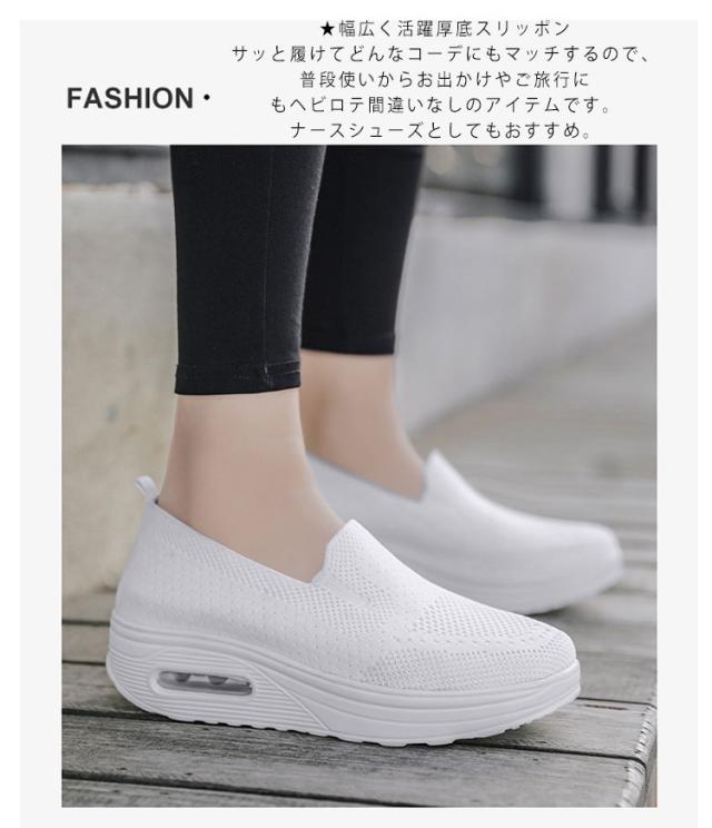 スリッポン スニーカー スポーツシューズ ナースシューズ レディース ウォーキングシューズ カジュアルシューズ ジム 婦人靴 軽量 通気 滑り止 高齢者 厚底 美脚 歩きやすい 疲れない 軽量 幅広 ローカット インソール インヒール 紐なし 送料無料