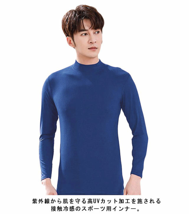 ゴルフ アンダーウェア 接触冷感 ゴルフインナー メンズ 長袖 ハイネック トップス UVカット 吸水速乾 薄手 冷感 ひんやり 涼しい コンプレッションシャツ インナーシャツ ストレッチ 日焼け対策 夏用 フィットネスウェア 快適 スポーツ 送料無料