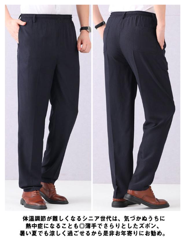 シニアファッション メンズ パンツ アイスシルクパンツ 涼感 涼しい 長ズボン 夏素材 ウェストゴム 高齢者 ズボン 60代 70代 80代 紳士服 お年寄り スラックス ストレッチ 洗える アイスシルクズボン 春夏 男性 総ゴム 父の日 プレゼント 祖父 夏服