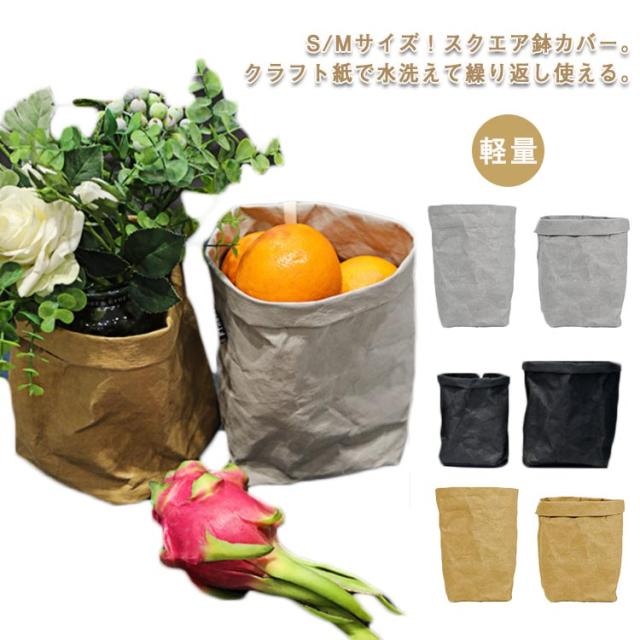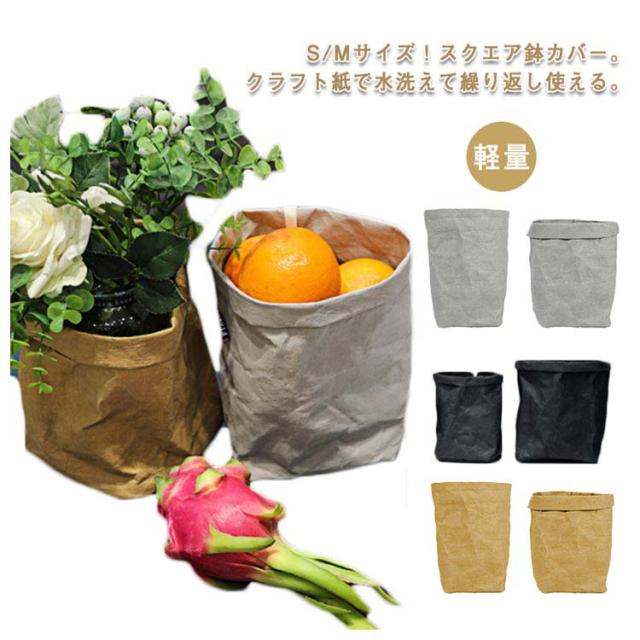 鉢カバー クラフト 紙袋 おしゃれ S/Mサイズ 大型 北欧 アジアン 紙 洗える おしゃれ 室内 穴なし 観葉植物 軽い 袋 軽量 スクエア 縦長 長方形 天然素材 ペーパー バッグ カバー ペーパーポット レザー 風 鉢 布 スタンド 小物入れ 多目的収納 かご