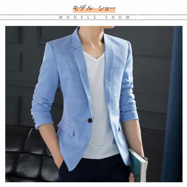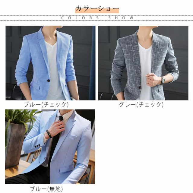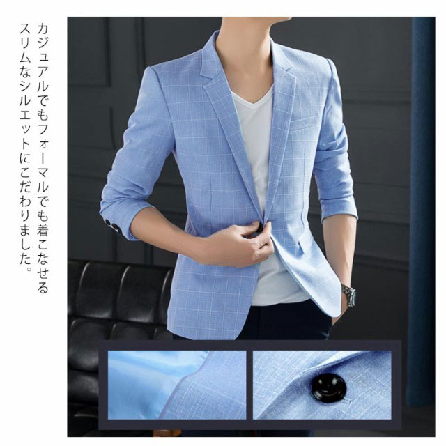 M-4Lサイズ!テーラードジャケット メンズ 春 ジャケット 春ジャケット テーラード アウター 薄手 春夏 チェック柄 無地 スリム 20代 30代 40代
