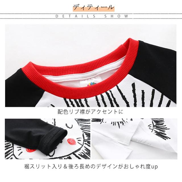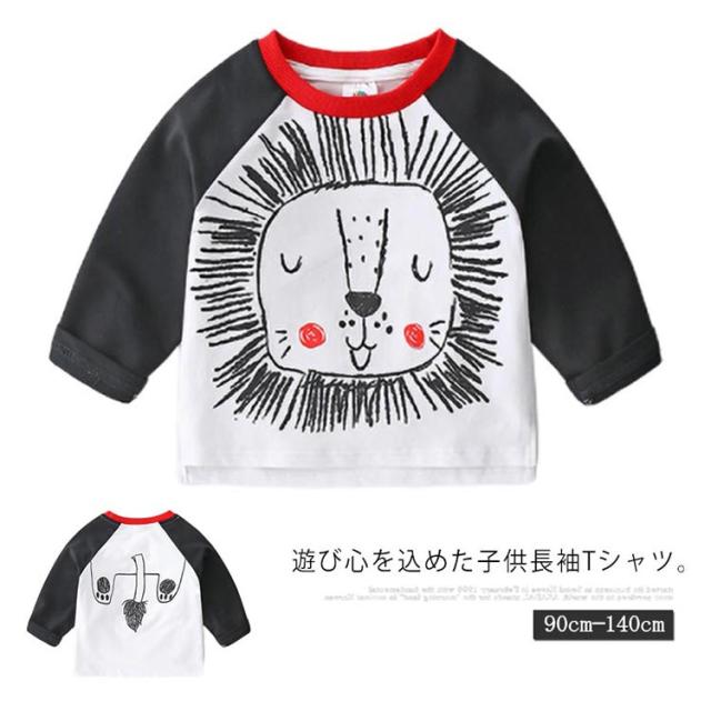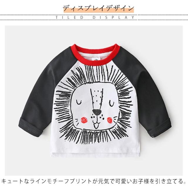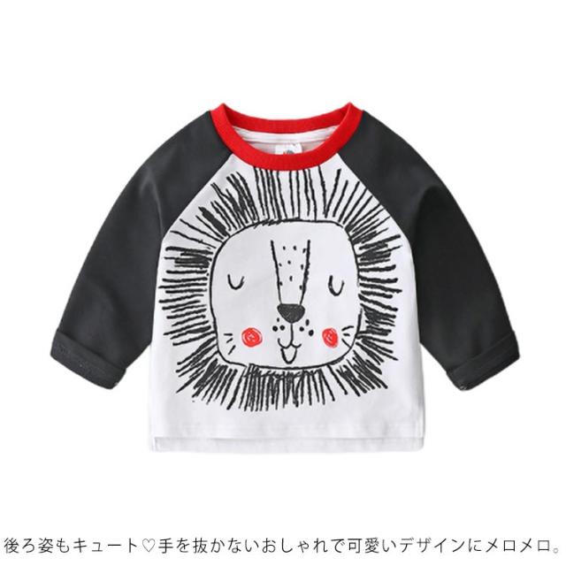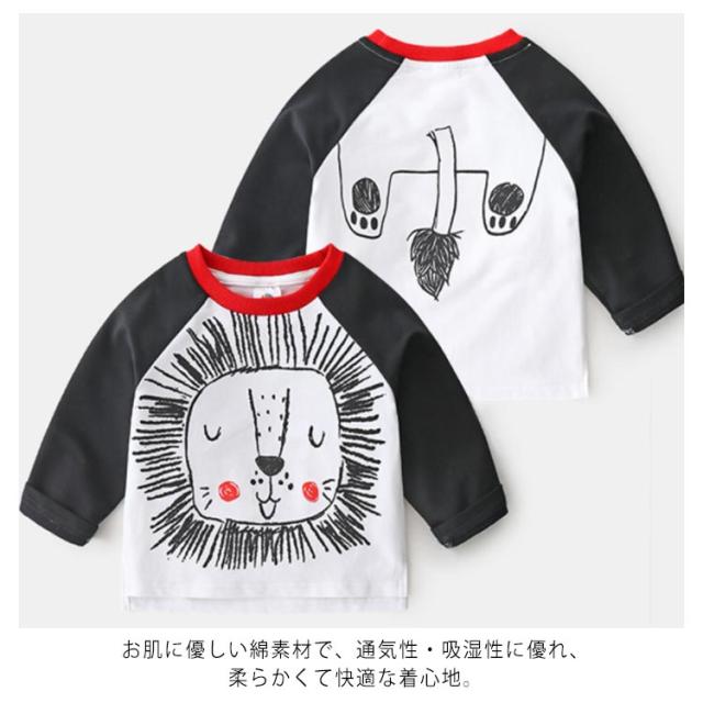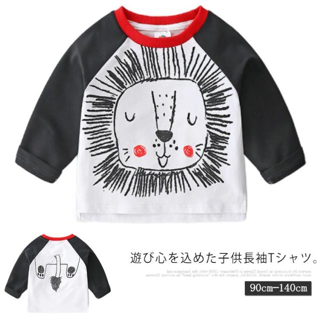 子供服 Tシャツ 長袖 アニマル 可愛い バイカラー ラウンドネック 女の子 男の子 ラグランスリーブ トップス ロンt 綿 春新作 動物 90cm 100cm 110cm 120cm 130cm 140cm