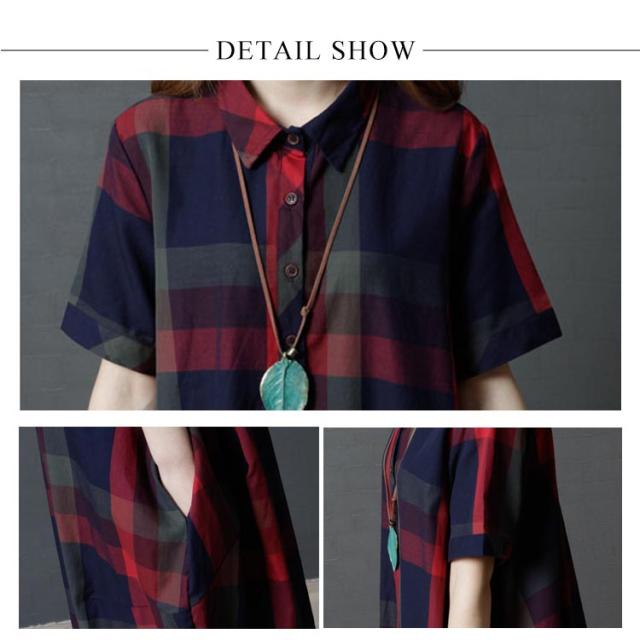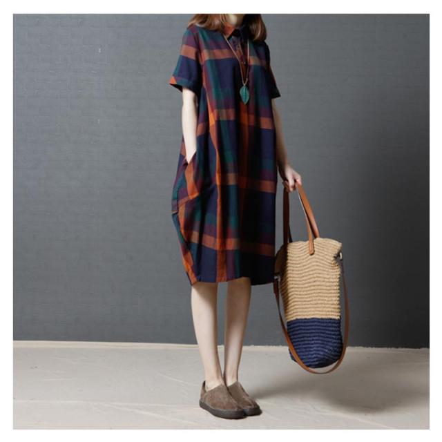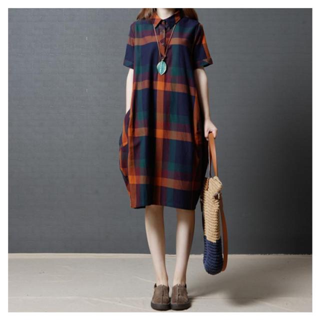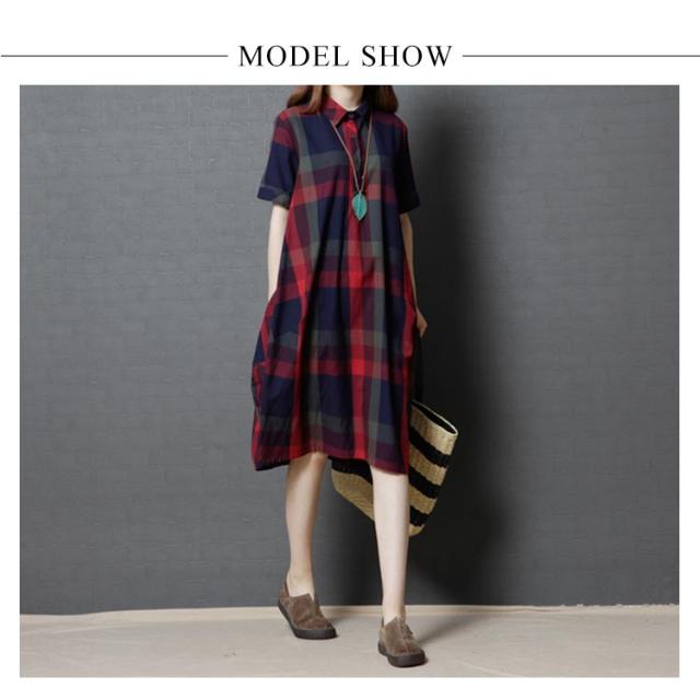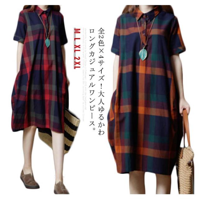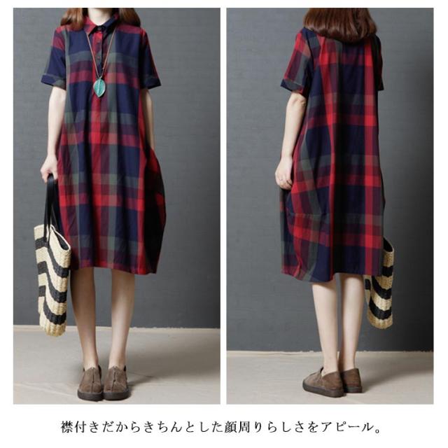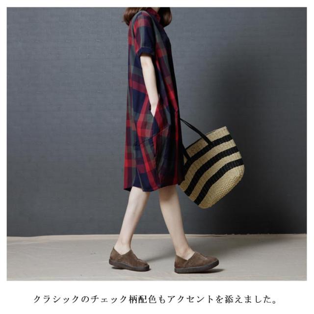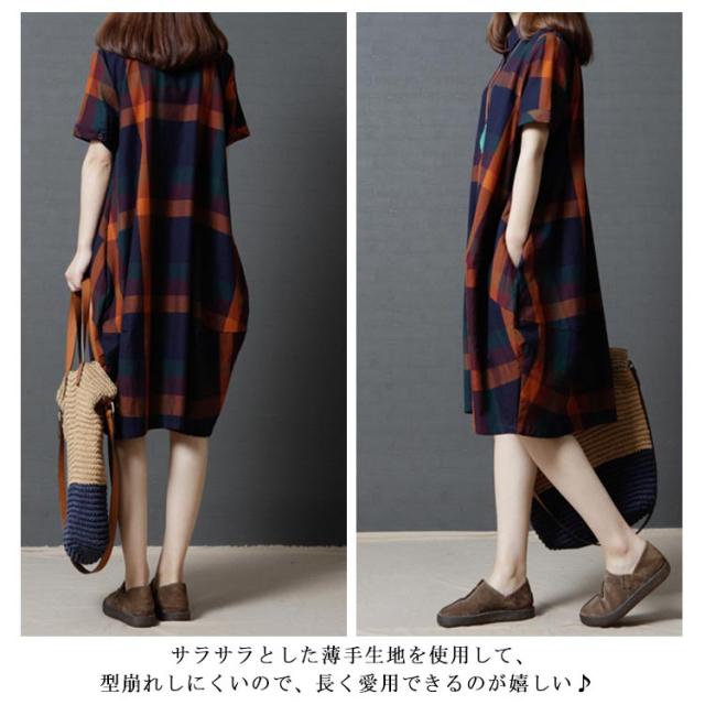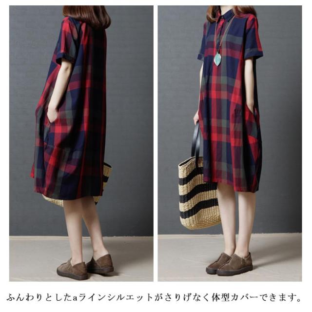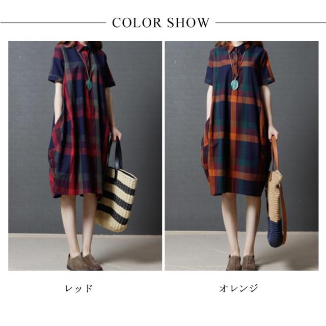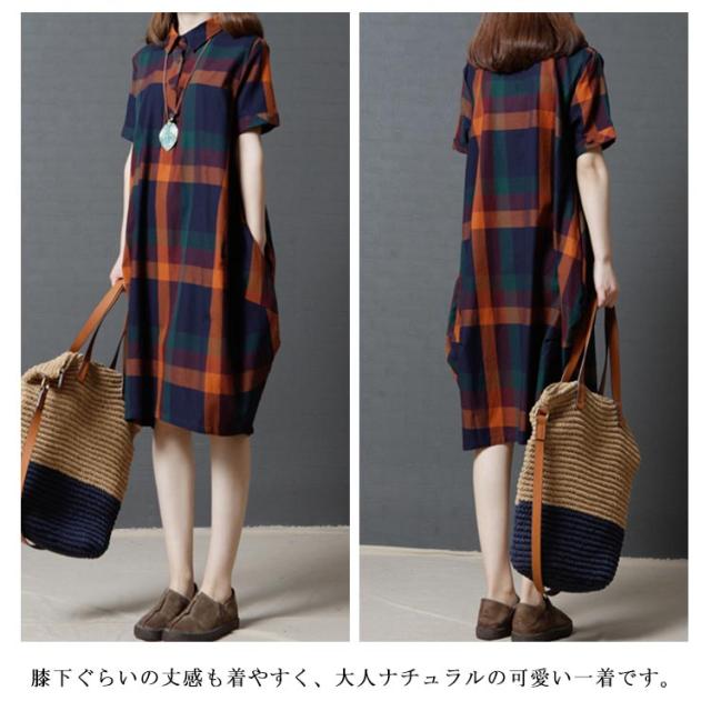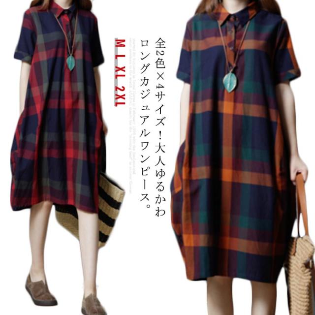 全2色×4サイズ!チェック柄ワンピース ワンピース チェック柄 半袖ワンピース シャツワンピース 膝丈 カジュアルワンピース 半袖 マルチカラー ゆったり 可愛い 春 夏