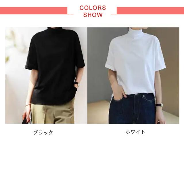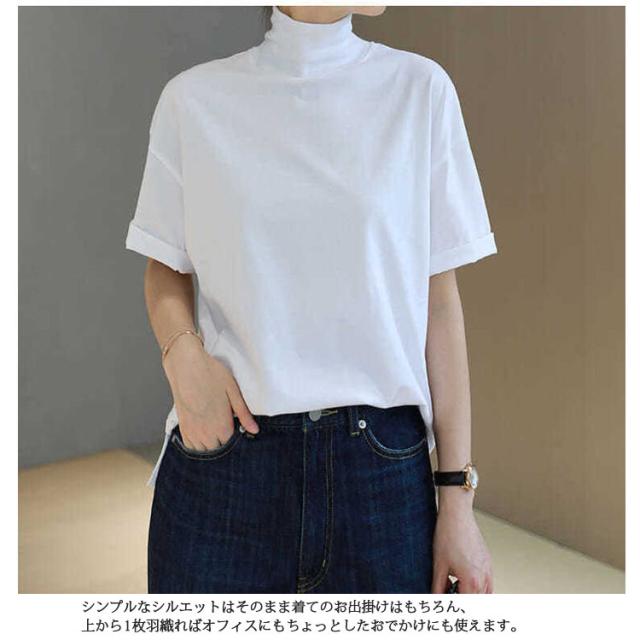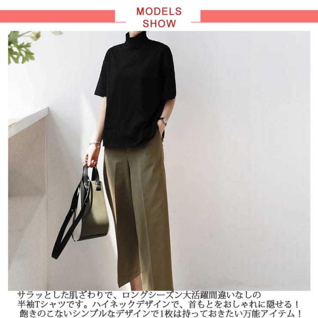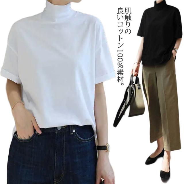 ハイネックカットソー レディース コットン 五分袖 タートルネック ハイネックカットソー ハイネック 半袖 半袖Tシャツ 綿 ボトルネック 春夏 秋 tシャツ 白 黒 大きいサイズ