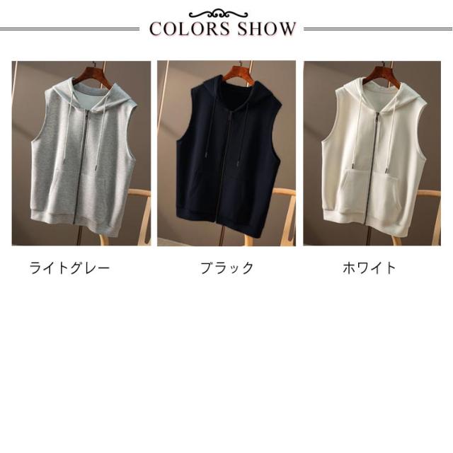 | 【 S M L XL 】 【ゆとりを持たせたシルエットスウェットベスト】 春から秋まで、ロングシーズンのレイヤードスタイルや一枚着として重宝するベスト。 生地なので柔らかな着心地も魅力的。 着脱しやすい前開きファスナー仕様。 | |