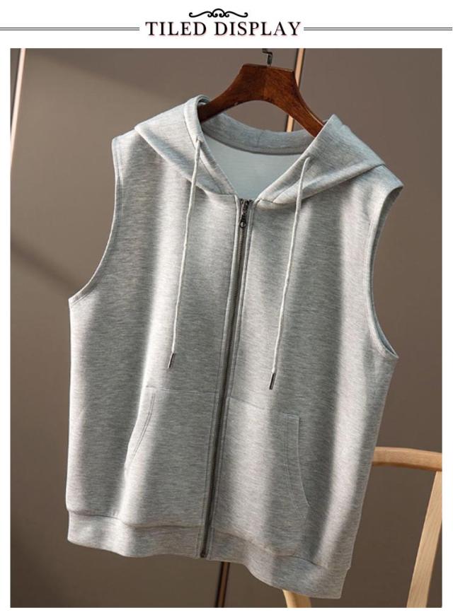 スウェット ベスト レディース スウェットベスト ノースリーブ トップス フード付き ライトアウター 綿 無地 シンプル 黒 白 グレー おしゃれ ジップアップパーカー 前開き ベスト 春アウター 羽織り ライトスエット ベスト 袖なし ゆったり 無地 レイヤード 送料無料