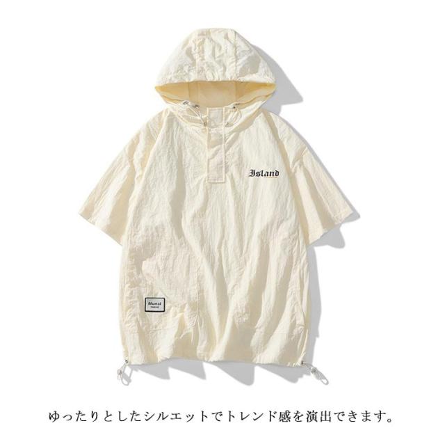 アノラック パーカー メンズ レディース ハーフジップ パーカー ナイロン 日よけ UVカット 半袖パーカー 無地 薄手 プルオーバーパーカー フーディー 涼しい 夏パーカー ビッグパーカー キャンプ ゴルフ 釣り 登山 スポーツ アウトドア イベント 男女兼用 送料無料