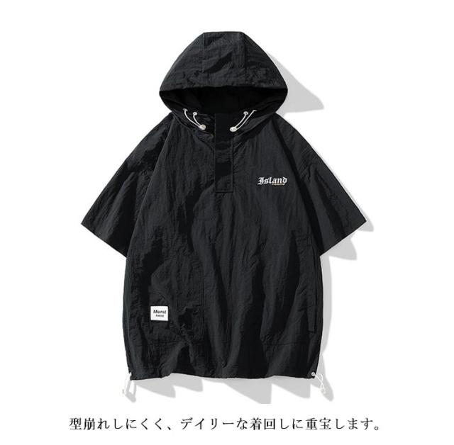 | 【 L 〜 9XL 男女兼用】 【着こなしの幅が広いハーフジップタイプの半袖パーカー】 軽量で耐久性のあるナイロン素材を採用し、薄手で通気性に優れており、夏のコーデにぴったりです。 フードと裾部分にドローコードが付いているため、シルエットの調節も可能です。 ゆったりとしたシルエットでトレンド感を演出できます。 型崩れしにくく、デイリーな着回しに重宝します。 | |