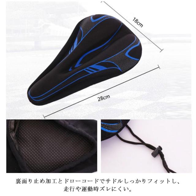 送料無料 防水カバー付き サドルカバー 自転車 3D 低反発 クッション ズレ防止 ロードバイク クロスバイク 痛くない 肉厚 おしゃれ 柔らい 快適 反射テープ付き