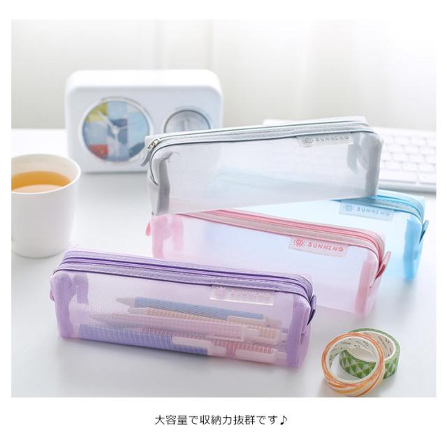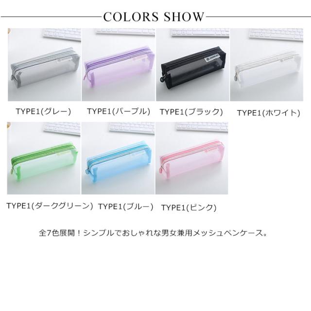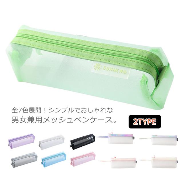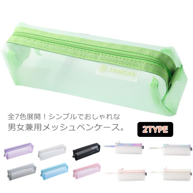 選べる2タイプ!全7色展開!ペンケース 筆箱 ふでばこ メッシュペンケース 透明 大容量 ペンポーチ クリアペンケース 文房具収納 送料無料 男女兼用 収納ポーチ