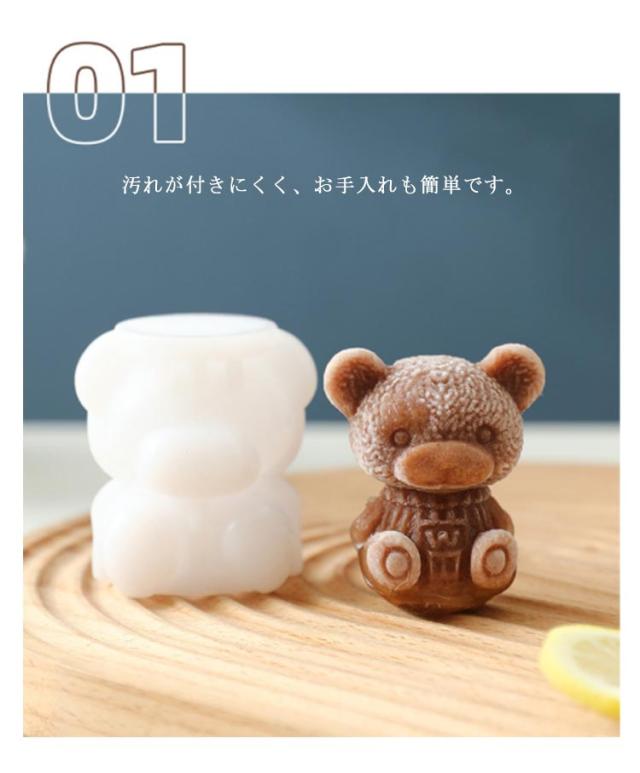 | サイズについての説明 | Sサイズクマ:6cm×5cm、重量約40g、容量約35ml Lサイズクマ:8cm×7cm、重量約100g、容量約75ml Sサイズバラ:4.7cm×4cm、重量約29g、容量約20ml Lサイズバラ:7cm×6cm、重量約109g、容量約100ml |