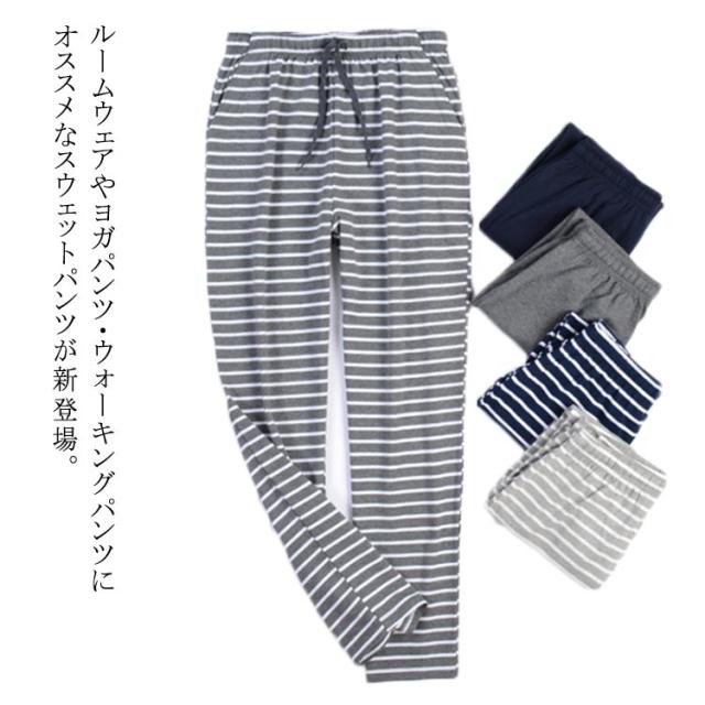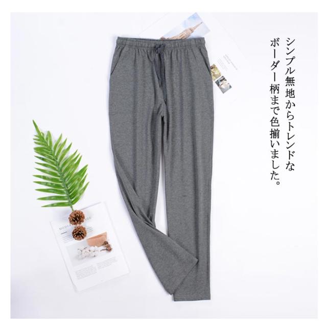 ルームパンツ メンズ ボーダー柄パンツ ボーダーパンツ スウェットパンツ パジャマ ジャージ 下着 部屋着 ルームウェア ヨガパンツ ロングパンツ スエットパンツ ボーダー柄 無地 コットン 春 夏 秋 送料無料
