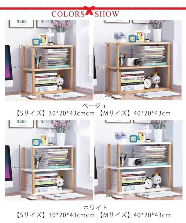 | デスク上のスペースを有効活用できます。収納に便利な3段卓上ラック。【Sサイズ?Mサイズ】 手の届く位置に、書類を置くことで日々の作業効率が格段にアップします。 棚の下にスペースがあるので、小物用の収納スペースとして便利 ホワイトとナチュラルの2色展開。お部屋のインテリアに合わせてお選びいただけます。 オフィスや家で机の上使用、書籍収納可能、文房具、ファイルデータ、写真展示、おもちゃ、コレクションなど出来ます。またキッチン収納ラックとしてもいいです。 | |