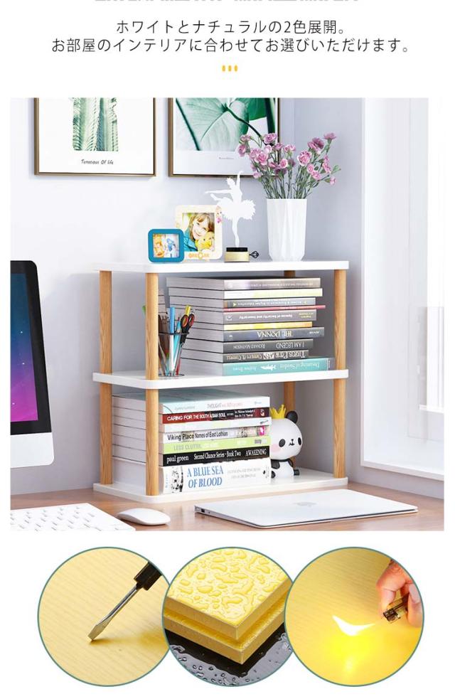 卓上 ラック 棚 3段 木製 スリム 机上 デスク上 収納ラック 収納棚 ブックスタンド ブックラック 本棚 書棚 本立て ブックエンド 倒れない 学習机 デスク 卓上ラック シェルフ 本収納 天然木 ナチュラル おしゃれ ディスプレイ 飾り棚