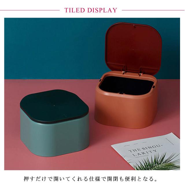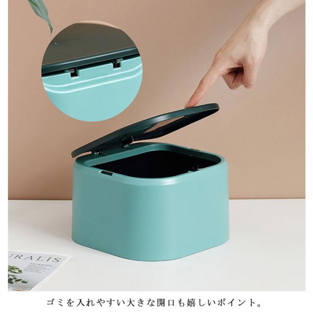 | 卓上などちょっとしたスペースに最適なゴミ箱。 押すだけで開いてくれる仕様で開閉も便利となる。 ゴミを入れやすい大きな開口も嬉しいポイント。 中のゴミ袋が見えない構造となっているスマート卓上ゴミ箱。 ふた付きのため大嫌いな匂い漏れも効果的に防ぎます。 どんな部屋にも馴染みやすいシンプルで美しいデザインとなる。 台所や洗面所、リビングやベッドルームや車などさまざまなところで使えます。 | |