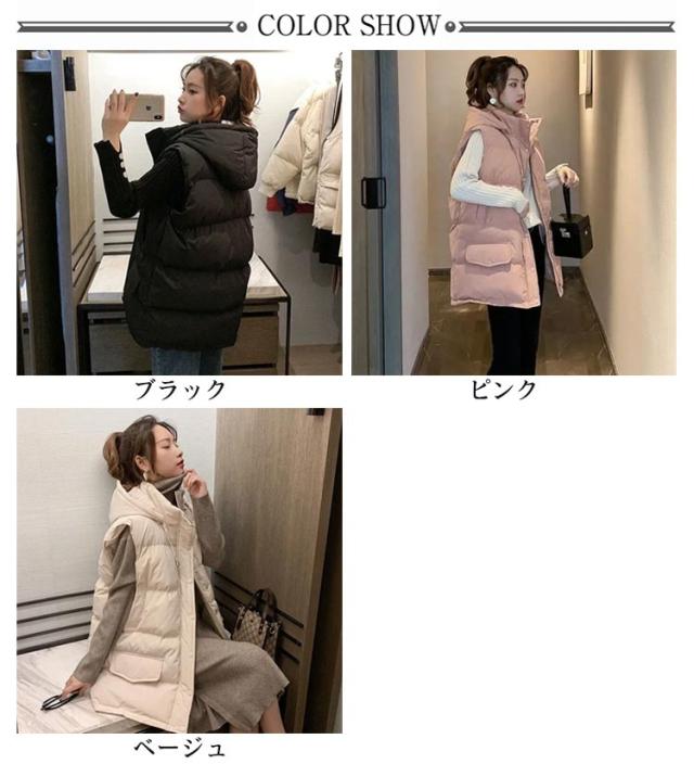 ベスト ジレ ロング丈 中綿ベスト レディース ロングベスト フード付き 秋冬 コート ジャケット 暖かい 中綿コート アウター 中綿ジャケット 羽織り 中綿 トップス 保温 防寒 軽量 シンプル カジュアル お洒落 大きいサイズ