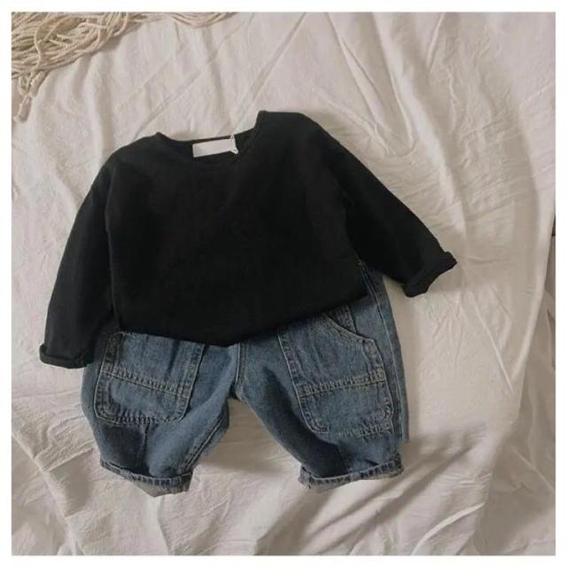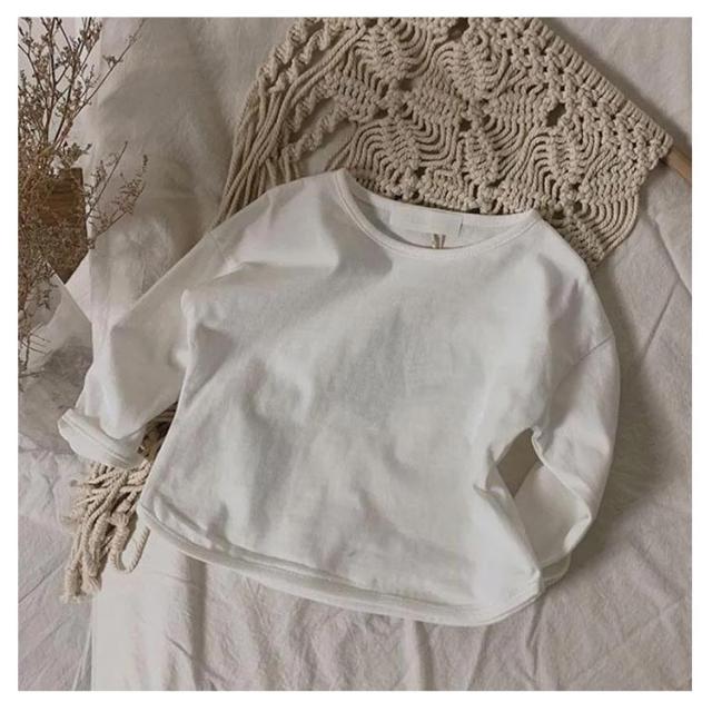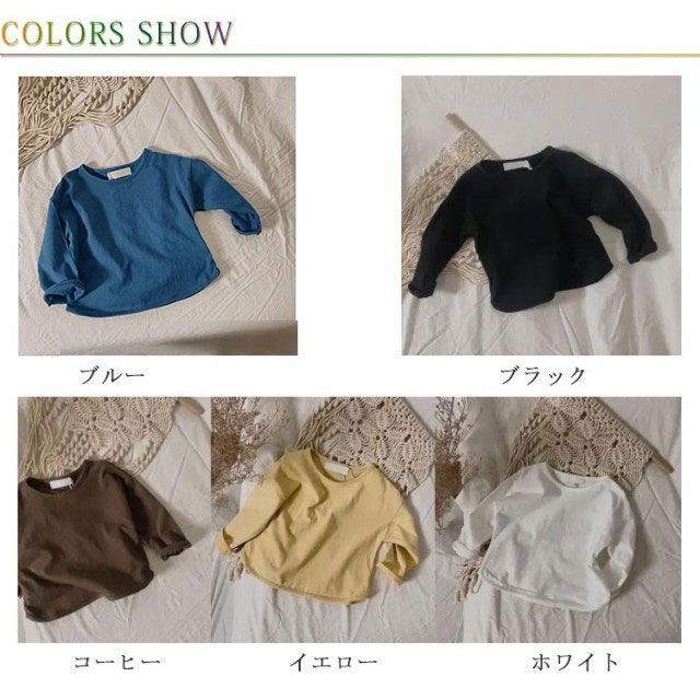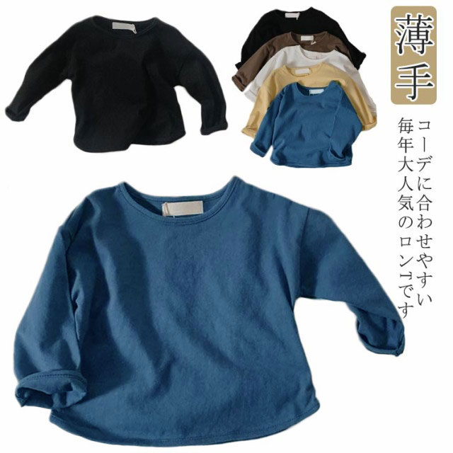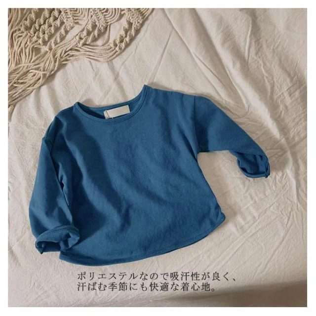 無地 カットソー インナー スウェット クルーネック 長袖Tシャツ 子供服 キッズ ベビー 男の子 女の子 キッズ服 ビッグシルエット ロンT 吸汗 ロングTシャツ 秋 冬 春 通園 通学 無地 シンプル 韓国 子供服 運動会 薄手 送料無料 80 90 100 110 120 130