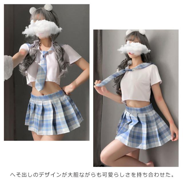 | 定番のセーラー服のコスチュームセットが新登場です。 トップス+スカート+Tバック+ネクタイ+ストッキングの5点セットです。 トップスの生地は伸縮性もあり動きやすく、スカートはマジックテープでの着脱が可能です。 へそ出しのデザインが大胆ながらも可愛らしさを持ち合わせた。 クリスマス、バレンタインデー、忘年会、撮影会、学園祭、文化祭などが大活躍。 | |
