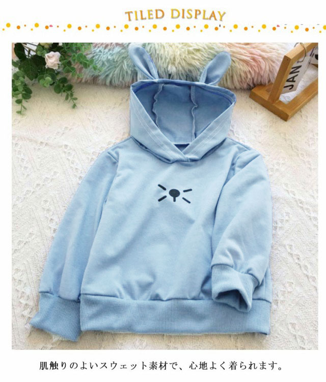 送料無料 パーカー 子供 ウサギ 耳付き パーカー キッズ 男の子 女の子 トレーナー トップス 綿 コットン ベビー 子供服 長袖 プルオーバー フーディー 無地 ジュニア 子ども服 ベビー服 秋 秋服 春 冬 冬服 無地 シンプル 通園 通学 小学生 80 90 100 110 120cm