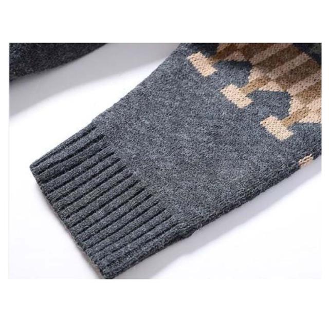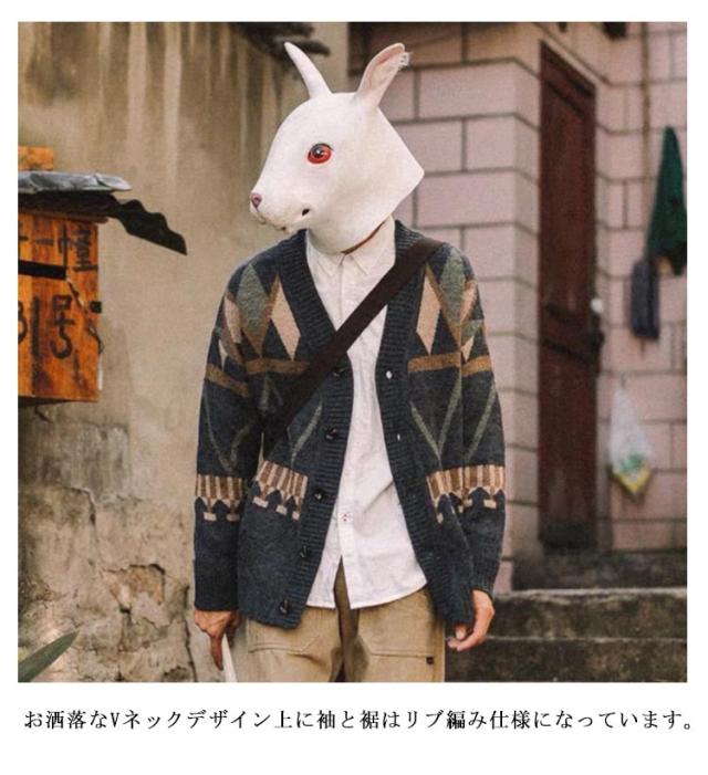 ニットカーディガン チェック柄 ロング カーディガン メンズ ユニセックス ペア 秋冬 トップス ニット 長袖 ニットカーディガン チェック柄 配色 送料無料