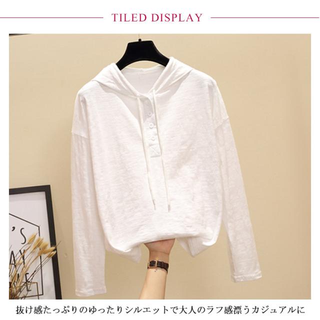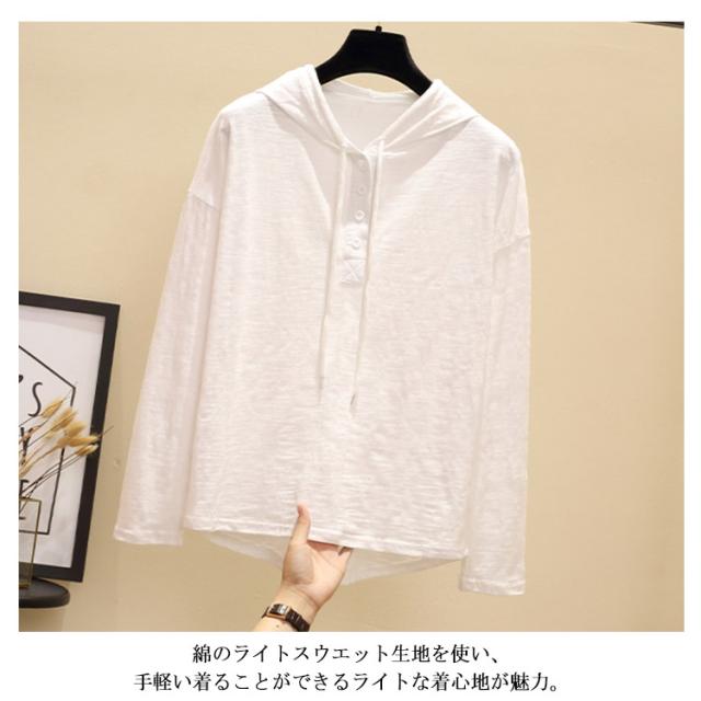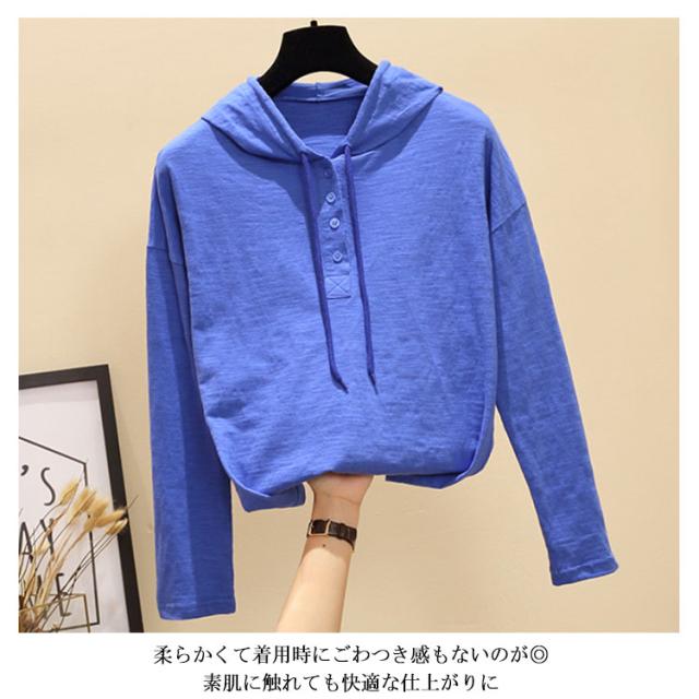 トップス tシャツ フード付き 長袖tシャツ カットソー フード付きtシャツ レディース パーカー 夏用 春用 トップス シンプル 無地 綿 お洒落 可愛い